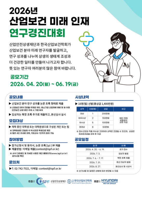 여러분의 연구와 실천이 우리 사회의 산업보건을 더욱 밝게 비추기를 바랍니다.